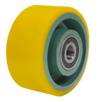 The PU425-75 from Richmond Wheel and Castor Co. is a 100mm diameter polyurethane tyred cast iron centred wheel with a maximum capacity of 500kg and has a tyre width of 50mm.The following Richmond castors use this wheel (not necessarily with the same axle diameter) R4271, S4270.This wheel is designed to suit 3/4 inch (19.05mm) axles and this wheel is available for the following alternative axle size: 1/2 inch (12.7mm), 5/8 inch (15.87mm), 17mm, 20mm.