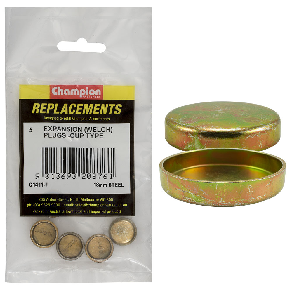 18mm Expansion Plugs (Welch) - Cup Type - Steel (Pkt.5)