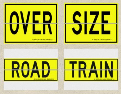 The 2 PC ROAD TRAIN/OVERSIZE SIGN - DOUBLE SIDED HINGED (C2P/OSRT) is a versatile sign designed for use on road trains and oversized vehicles.