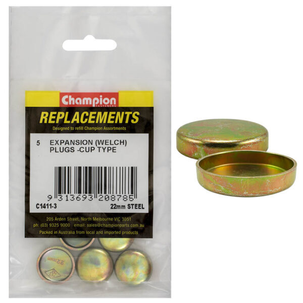 22mm Expansion Plugs (Welch) - Cup Type - Steel (Pkt.5)