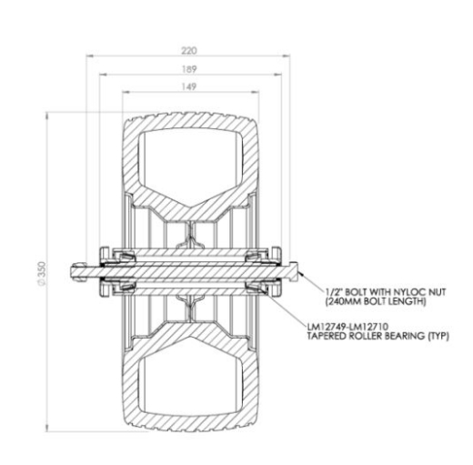350mm Semi Pneumatic Rubber Tyred Wheel | 1/2" Axle Diameter