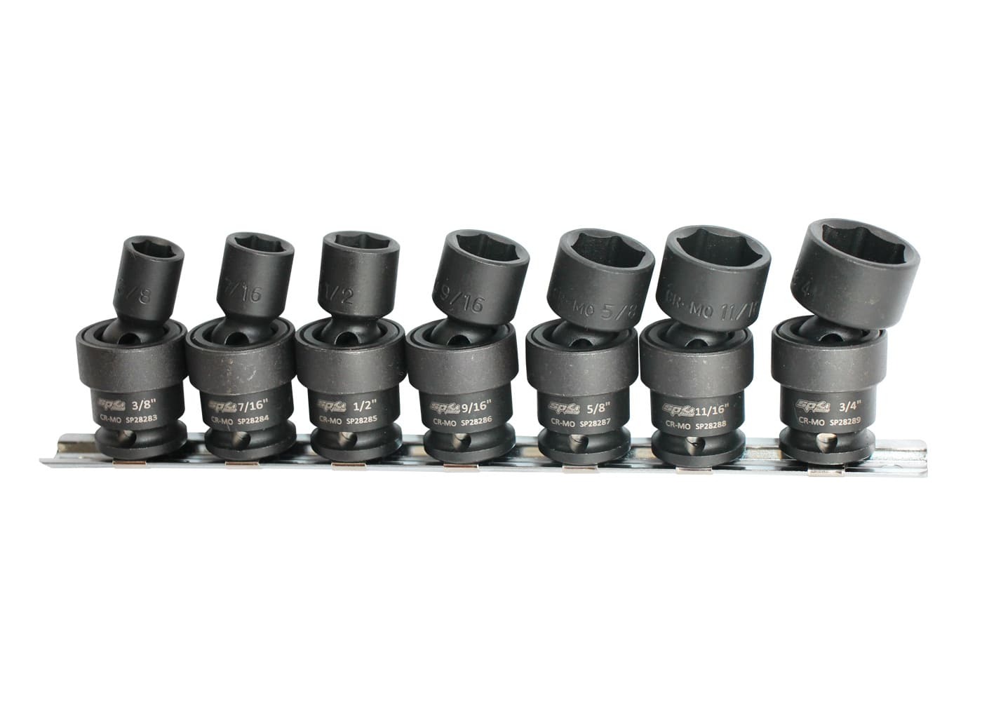 - 3/8, 7/16, 1/2, 9/16, 5/8, 11/16 & 3/4" Swivel Impact Socket