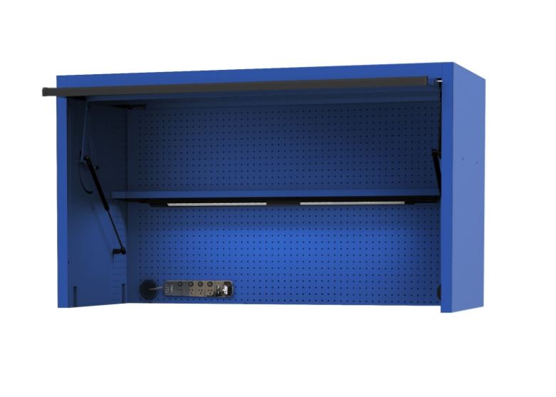 59" USA SUMO SERIES WIDE POWER TOP HUTCH - SHELF, PEGBOARD, LIGHT - BLUE/BLACK