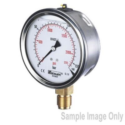This gauge is designed to provide accurate pressure readings and is commonly used in various industrial settings