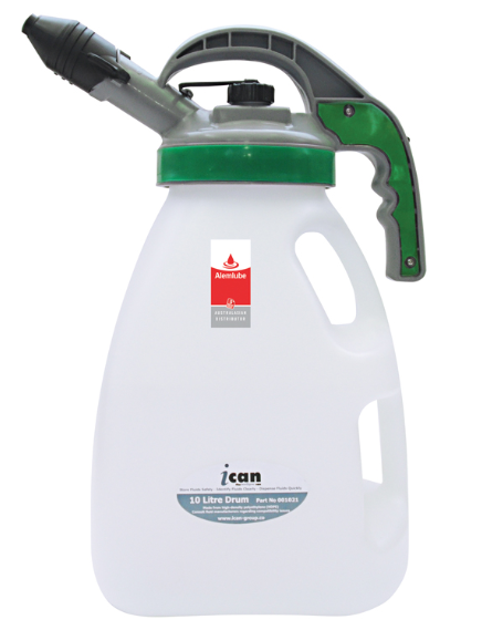 The user friendly design features an innovative on/off toggle switch that makes dispensing the fluid a breeze. The square base on the 001021-12 iCan 10L oil container results in greater stability and the unique colour coding enables quick and easy lubricant identification.