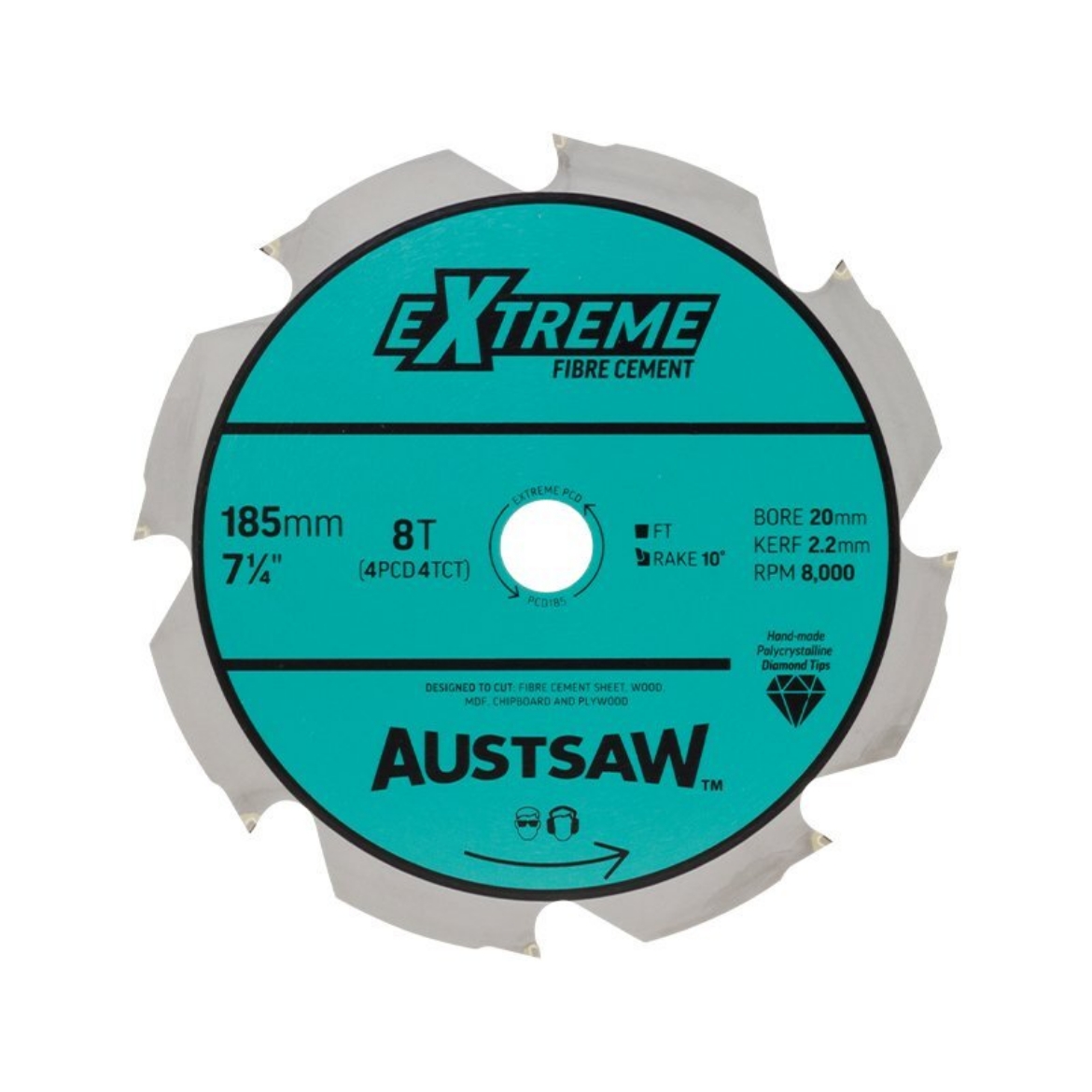 Austsaw - 185mm ( 7 1/4in) Polycrystalline Diamond Blade - 20/16mm Bore - 4PCD 4TCT Teeth
