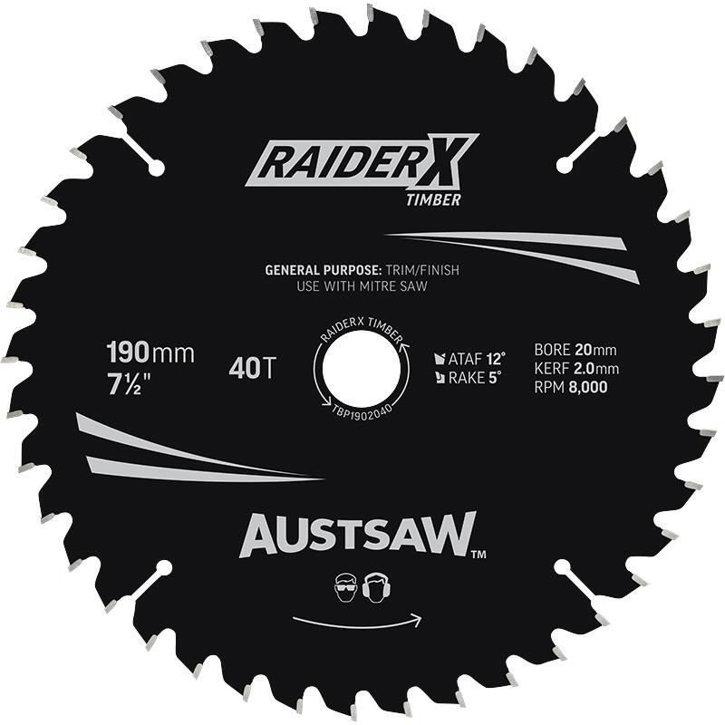 Austsaw RaiderX Timber Blade 190mm x 20 Bore x 40 T