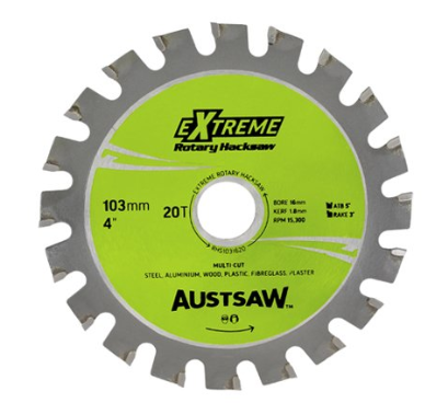 Austsaw - 103mm (4in) Rotary Hacksaw Blade - 16mm Bore - 20 Teeth