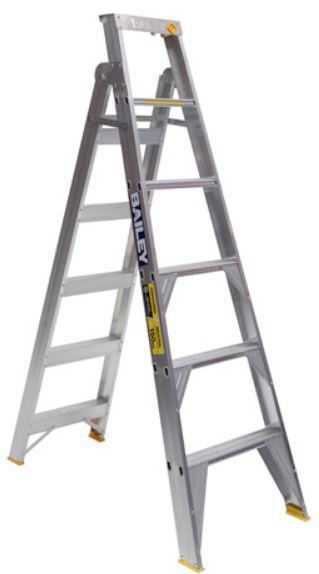 Quicklatch: Converts from a straight ladder back to a stepladder with the press of a button Punchlock tread design and deep fascia top caps increase torsional rigidity of the overall ladder frames Industrial Duty Rated. Designed for use on industrial work sites 150kg load rating Strong, aluminium construction Easily converts from a stepladder to a single ladder, automatically latches into position Slightly tapered back legs provide added stability when used as a stepladder Anti-slip feet for added safety and stability Made to Australian and New Zealand Standards AS/NZS 1892.1