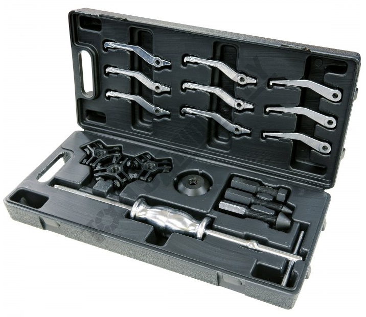 This professional quality Slide Hammer Puller kit with internal and external jaws provide a variety of combinations to pull bearings, gears and seals.
