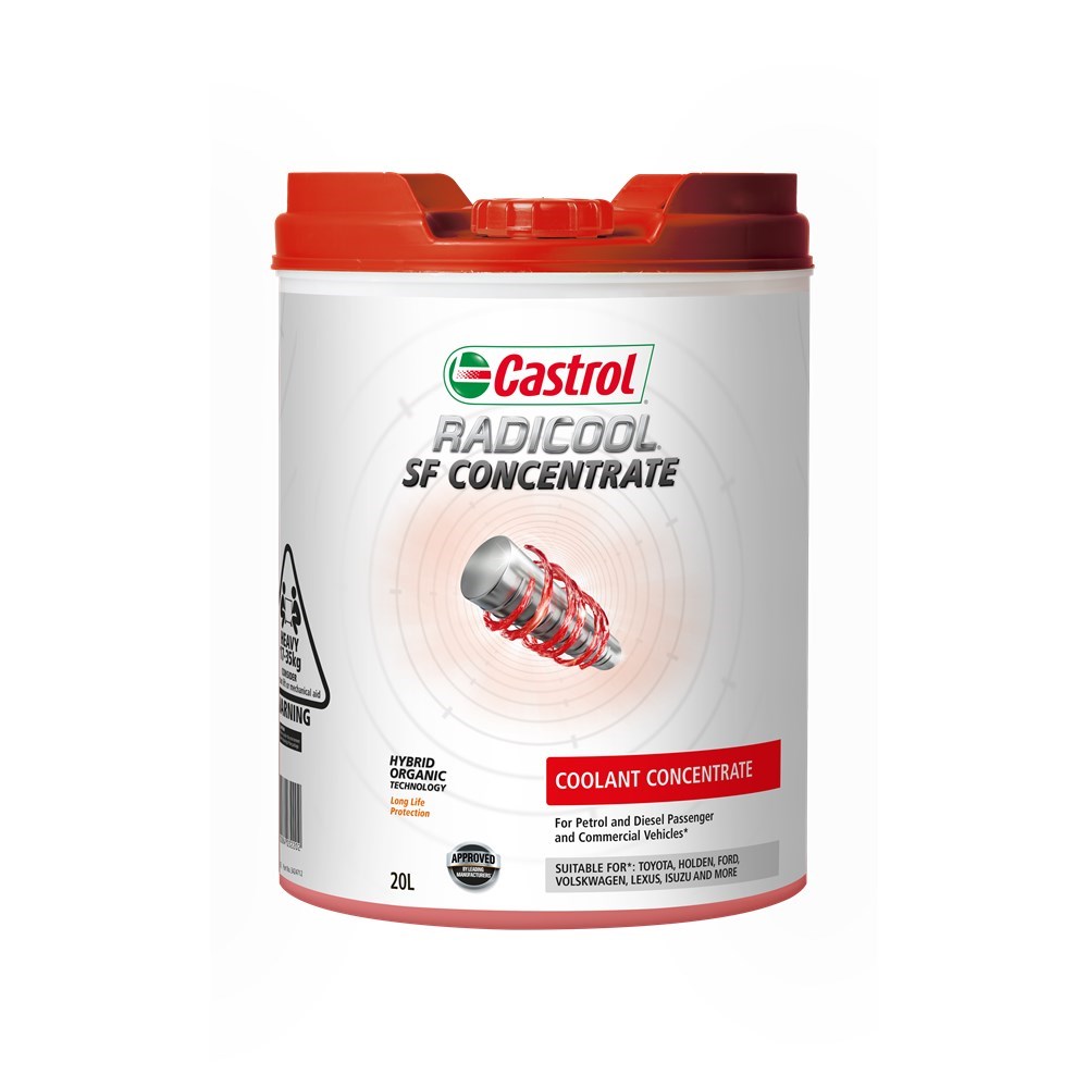 Castrol Radicool SF Premix is a long-life ready to use coolant based on monoethyleneglycol with advanced organic acid inhibitor technology. In contrast to traditional antifreeze coolants, Castrol Radicool SF Premix does not contain amines, nitrites, phosphates, silicates or other inorganic inhibitors.