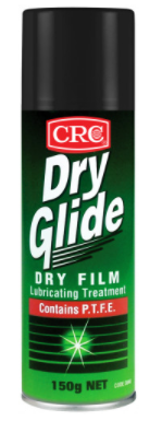 CRC Dry Glide with PTFE is a technically advanced multi-purpose long term dry film lubricant. CRC Dry Glide with PTFE will penetrate and bond to metal, wood, rubber, glass and most surfaces and form a non-staining micro thin film that prevents sticking, reducing friction and wear. CRC Dry Glide with PTFE will seal out moisture and inhibit corrosion and resists oil, dust and dirt build-up. Will not melt, freeze or wash off. Everything works easier.
