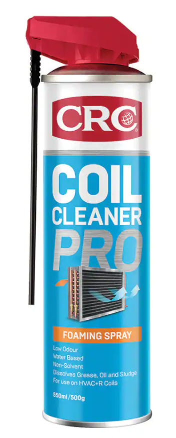 CRC Coil Cleaner Pro is an industrial strength foaming coil cleaner that effectively dissolves grease, oil and sludge from air conditioning and refrigeration coils. It is suitable for both evaporator and condenser coils. CRC Coil Cleaner Pro is non-caustic and non-acidic and does not require rinsing from evaporator coil cleaning applications. Coil Cleaner Pro is suitable for cleaning small kitchen equipment, air conditioning and refrigeration filters, fan blades and blower wheels