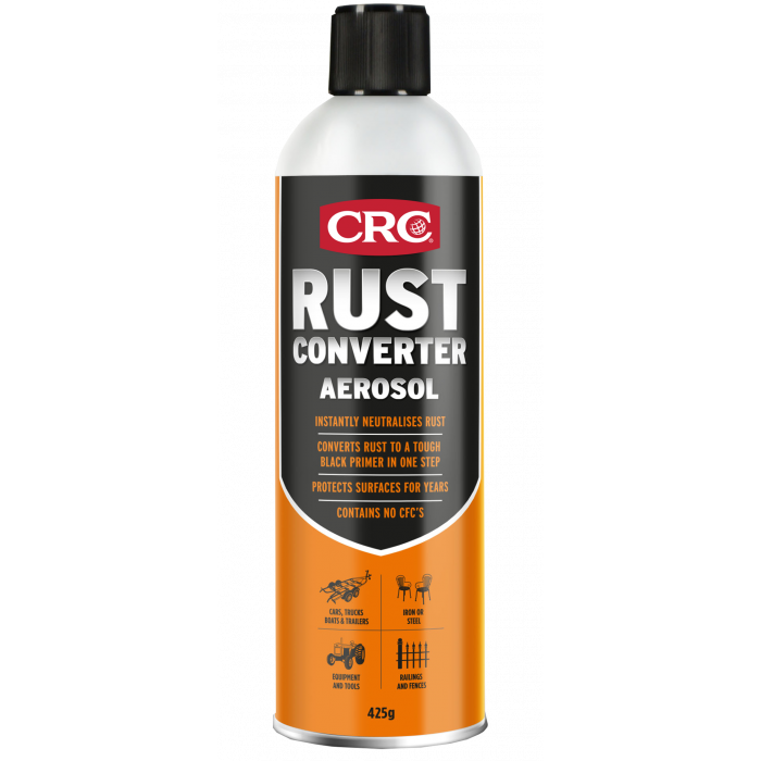 CRC Rust Converter is a unique fast drying coating formulated for treatment of lightly rusted or correctly prepared metal surfaces. CRC Rust Converter neutralises rust and converts it to a tough black primer in one easy step. It binds to the surface and provides a waterproof barrier by sealing out moisture and other outside elements for effective long-lasting rust protection. No more sandblasting, heavy scraping, or grinding.