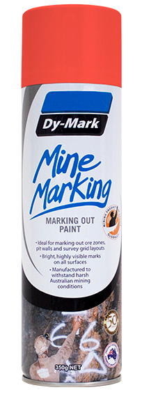 Dy-Mark Mine Marking is a marking out paint specially formulatedfor above / below ground areas (not recommended for underground coal mines – use Mine Marking Non-Flammable). Mine Marking utilizes a 360 degree valve and is available with two nozzle options for upright/ inverted or horizontal spray applications. Horizontal features a standard paint nozzle (for where the main application is side walls) whilst vertical is designed for marking ceilings and floors. For high ceilings and hard to reach areas, use of the Dy-Mark Mine Marking height extension handle is recommended (suitable for use with both options). Applications include markingout ore zones in grading control, pit walls and server grid layouts.