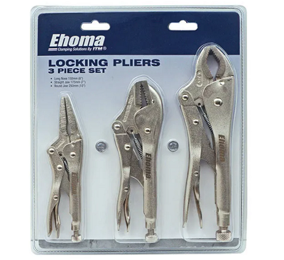 EHOMA 3 PIECE LOCKING PLIER SET, ROUND JAW 250MM, STRAIGHT JAW 175MM & LONG NOSE 165MM