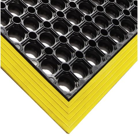 - Bevelled edge option eliminates trips or falls on mat edges and optional yellow highlights mat