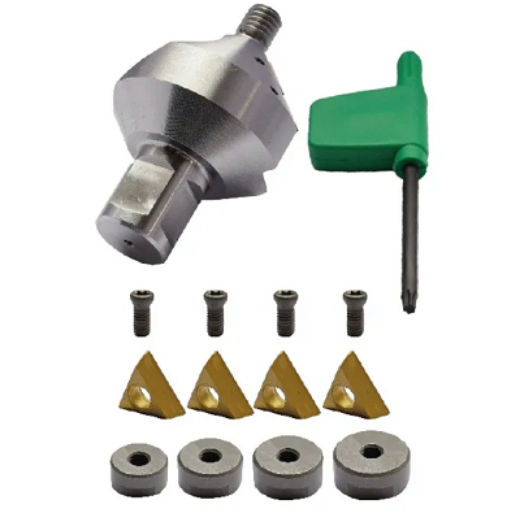 Tungsten Carbide Tipped for maximum tool life, even in most difficult materials.Suitable for drilling difficult materials e.g. stainless steel, Bisalloy & wearplate.For use with pilot to suit the pre drilled hole for accuracy and stability, pilots available from 14mm to 25mm diameter.All three sides of the inserts can be used - maximising lifetime of the inserts.Set Includes: