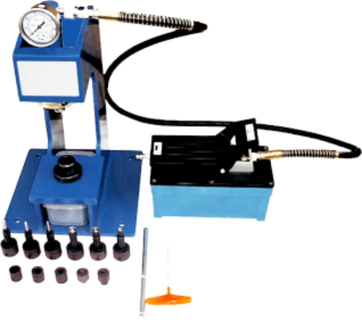 The machine is supplied with air hydraulic pump, 6ft high pressure hose and 3" 10,000psi pressure gauge.