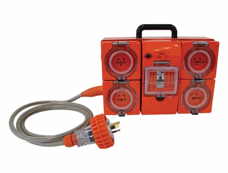 Industrial Power board - 240V 15 Amp with 4 x 15 Amp RCBO protected outlets.
