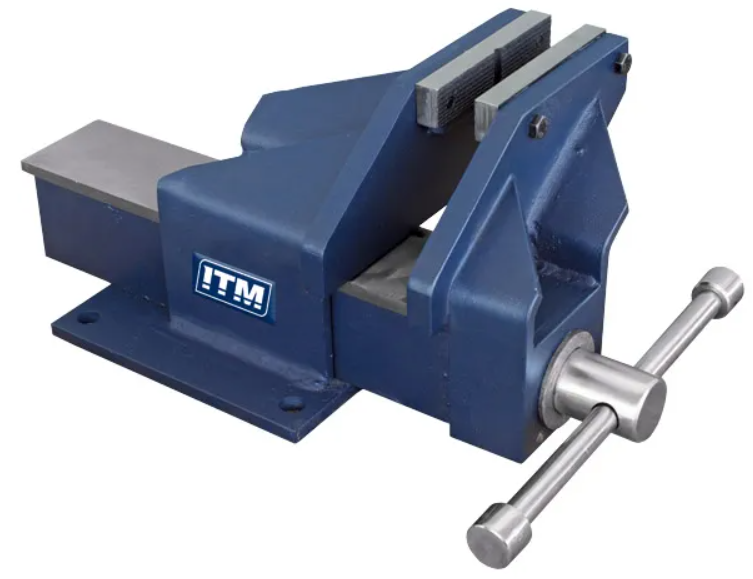 Manufactured from graded cast iron, vices have a precision ground base and vice bed for smooth lateral movement of the movable jaw. Fixed jaw with 3 longitudinal and 1 transversal prisms allows firm gripping of round stock both horizontally and vertically. Special seat in jaws facilitates clamping of low height work pieces. Spindle moves inside the hollow hand grip allowing the vice to be tightened at any position on the table thus increasing the scope of application of the vice. Elongated clamping slots for rapid adjustment of the vice on the work table help save time.