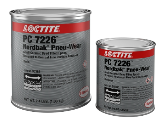 LOCTITE PC 7226 is a 2-part, grey, carbide-filled, trowelable, non-sagging, epoxy-based surface coating for protecting processing equipment from fine particle abrasion (with or without chemical attack). It is suitable for overhead and vertical surfaces. Typical applications include dredge pump liners, flumes and troughs, pump impellers, vibrating feeders, and chutes/hoppers.