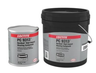 LOCTITE PC 9313 (known as NORDBAK HIGH IMPACT WEARING COMPOUND) is a gray, 2-part, rubber modified epoxy. With impact resistance superior to ceramic tile, it is recommended for lining and protecting flumes, troughs, elbows, hoppers, discharge chutes, and other processing equipment that is exposed to both abrasion and impact under typical temperatures of -20 °F to +250 °F (-29 °C to +121 °C).- Cures to ceramic hardness – resists sliding abrasive wear