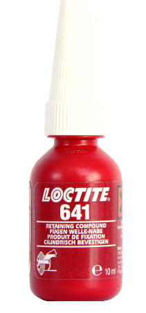 LOCTITE 641 is designed for the bonding of cylindrical fitting parts, particularly where disassembly is required for servicing operations. The product cures when confined in the absence of air between close-fitting metal surfaces and prevents loosening and leakage due to shock and vibration. Ideal for parts that need subsequent dismantling, i.e. retention of bearings on shafts and in housings.- Ideal for parts that need subsequent dismantling, i.e. retention of bearings on shafts and in housings