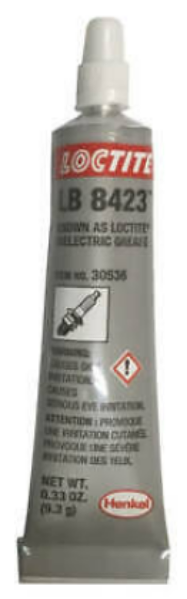 LOCTITE LB 8423 is a translucent, thick silicone dielectric compound paste that facilitates and improves tune-ups. It prevents voltage leakage around electrical connectors thereby ensuring a strong spark in high energy ignition systems. Also an excellent lubricant on rubber, plastic and ceramic surfaces, it has an operating temperature range of -67 °F to +399.2 °F (-55 °C to +204 °C).