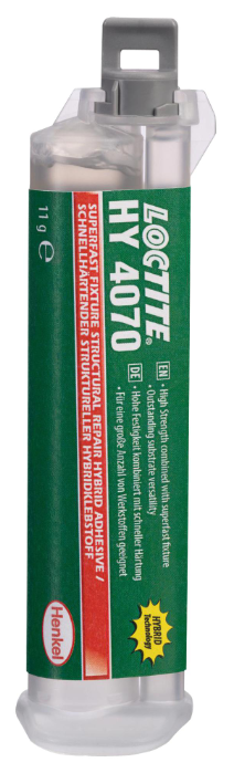 LOCTITE HY 4070 is a 2-part, transparent, cloudy colorless to pale yellow cyanoacrylate/acrylic hybrid universal bonder that provides a fast fixture at room temperature in bond gaps up to 0.2 in (5 mm). It works well on various substrates including most plastics, rubbers and metals. It is used where complete cure of excess adhesive as well as temperature and moisture resistance is required. Best application results are achieved with LOCTITE cyanoacrylate mixing nozzle.