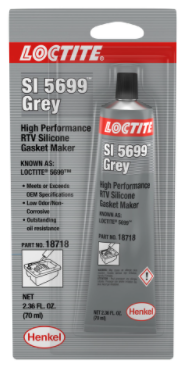 LOCTITE SI 5699 is a flexible silicone sealant and cures on exposure to moisture in the air to form a tough rubber gasket. The product is designed primarily for flange sealing with excellent oil resistance or rigid flange sealing for example on transmissions and cast metal housings. It is tack-free after just 10 min. The product is water-glycol resistant and can be used on machined or cast surfaces, metal or plastic.