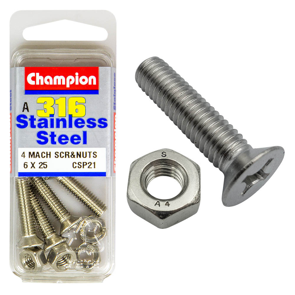 MACHINE SCREW & NUT-CSK 6 x 25 (Pkt.4)