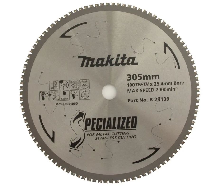 MAKITA® SPECIALIZED metal cutting blades not only cut quicker and cleaner, they will outlast traditional abrasive discs up to 30 times. The specially formulated carbide teeth are precision ground for fast clean cutting, low sparking and minimal swarf production. They provide cool cuts with burr free edges and a reduced cost per cut.