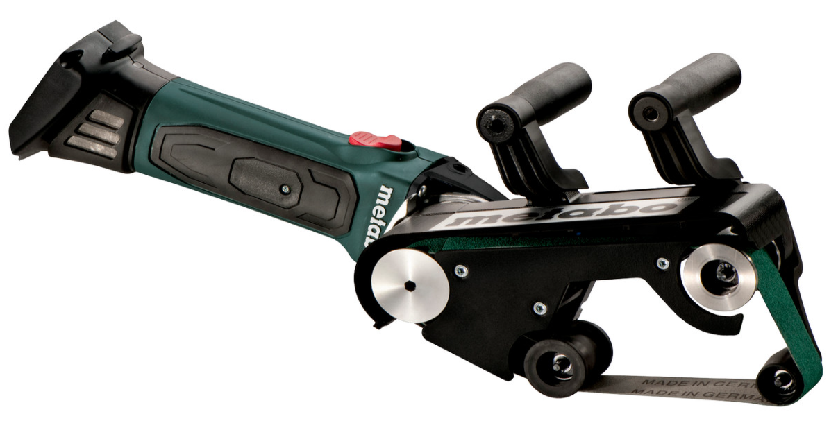 Compact cordless tube belt sander for quick, flexible processing of stainless steel pipes