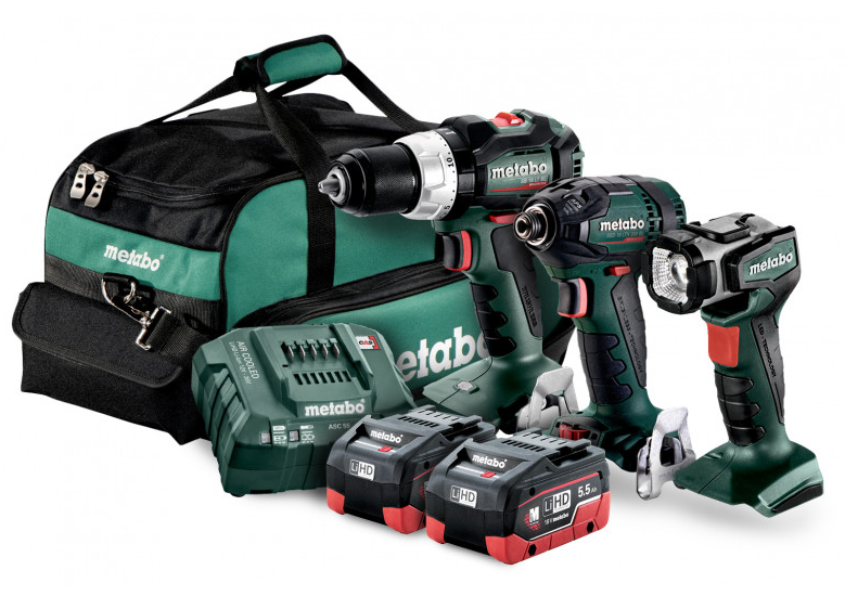 METABO 3 PIECE SET 18 V BRUSHLESS LT CLASS HAMMER DRILL + 200NM IMPACT DRIVER + 18V LED LAMP