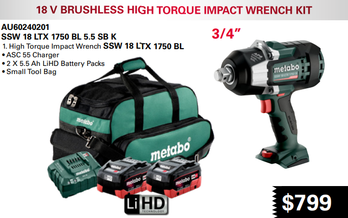 Brushless High Torque Wrench 1750Nm Operating Torque 12 Speed/Torque settings 2100Nm Nut Busting Torque LED Lights Drop Secure Hook Small Tool Bag 2 x 5.5 LiHD Batteries Charger