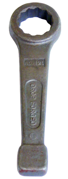 KC Tools Metric Slogging Spanner is designed for impact tightening and removal of large size nuts by striking with sledge hammer or air impact hammer. Length: 175 mm. Size: 27 mm. Diameter: 46 mm.