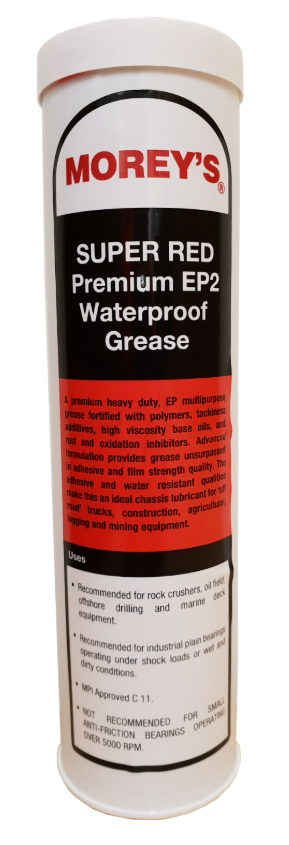 MOREY’S SUPER RED PREMIUM EP-MP2 LITHIUM GREASE is a premium, heavy duty, EP MultiPurpose grease fortified with polymers, tackiness additives, high viscosity base oils and rust and oxidation inhibitors. Morey’s Super Red Premium grease advanced formulation provides a grease unsurpassed in adhesive and film strength quality.