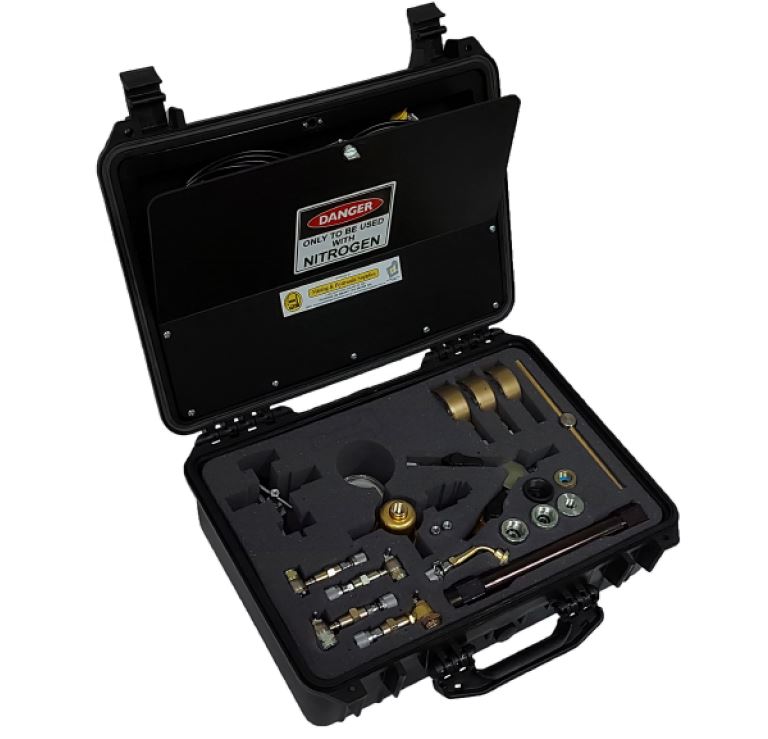 The Nitrogen Charge Kit facilitates the maintenance of accumulators for hydraulic, transportation and other uses. These highly customisable kits are avaliable with a large range of gauges, ­ttings, adaptors and hoses. These can be speci­ed from a basic kit for use on a particular machine, through to the all-inclusive ‘Master’ kit. All kits come in rugged case with foam inserts, providing maximum protection as well as extra storage for hoses.