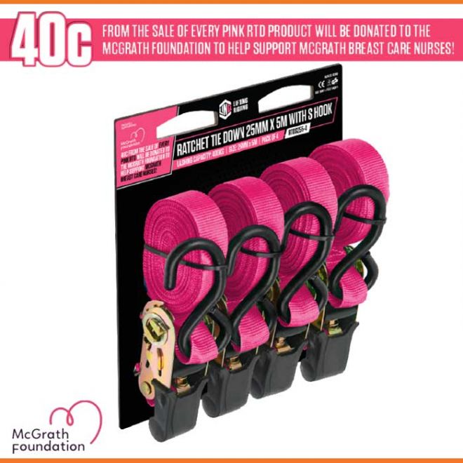 PARAMOUNT PINK S HOOK 25MM X 5M RATCHET TIE DOWN - 4 PACK