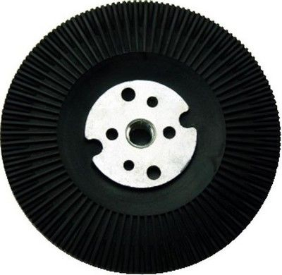 High-performance backing pad for use with fibre discs on commercially available angle grinders.
