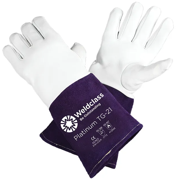Standard TIG welding gloves? Think again! PLATINUM TG-21 gloves are preferred for their excellent dexterity/feel, great fit/comfort and superior construction. Using a unique proprietary grain leather, this glove offers "the best of both": great comfort/feel AND good heat resistance & long life. Special pattern which comfortably fits most hand sizes.