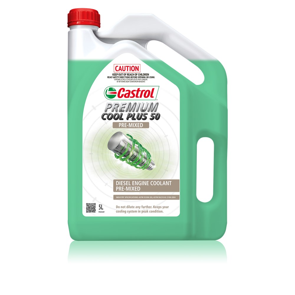Castrol Premium Cool Plus 50 is a READY-TO-USE ethylene glycol based engine coolant containing a balanced mixture of organic acid and inorganic corrosion inhibitors specially designed to service the requirements of a broad range of heavy duty diesel engines, particularly those with wet sleeve cylinder liners.