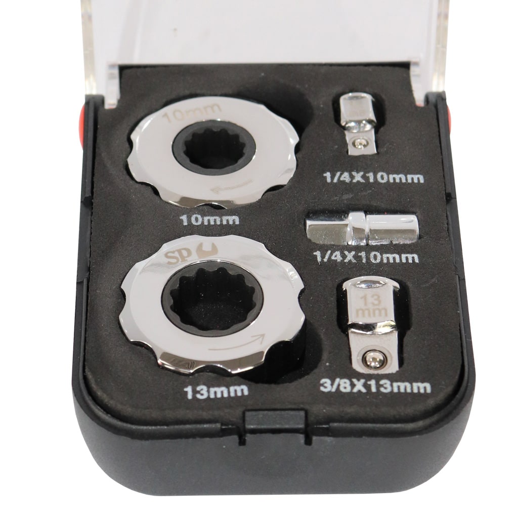 - Compact, low profile 10 & 13mm finger ratchet drivers perfect for loosening/tightening bolts and nuts in tight work spaces and close quarters