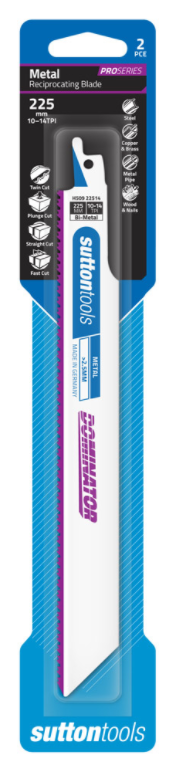 Sutton Tools Dominator reciprocating saw blades are a high performance blade with an extra tall and thin body for fast, accurate and straight plunge cuts in metal.