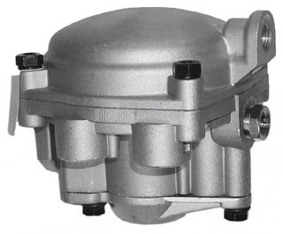 Relay emergency valves are commonly used on pre-121 trailers and in current off-highway braking systems and trailer converter dollies. The relay emergency valve is a dual function valve. Under normal braking conditions, it serves as a relay valve, applying and releasing the service brakes. The emergency portion of the valve senses supply line pressure and should pressure in the supply line fall below a predetermined minimum, the valve will automatically apply the vehicle service brakes from its own protected reservoir.