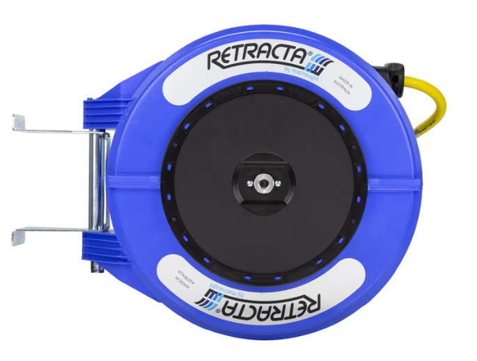 RETRACTA R3 Premium spring rewind reel c/w 15m x 1/2" Premium Air hose, 3/8" BSPF inlet fitting and 3/8" BSPT M hose end. Blue case.