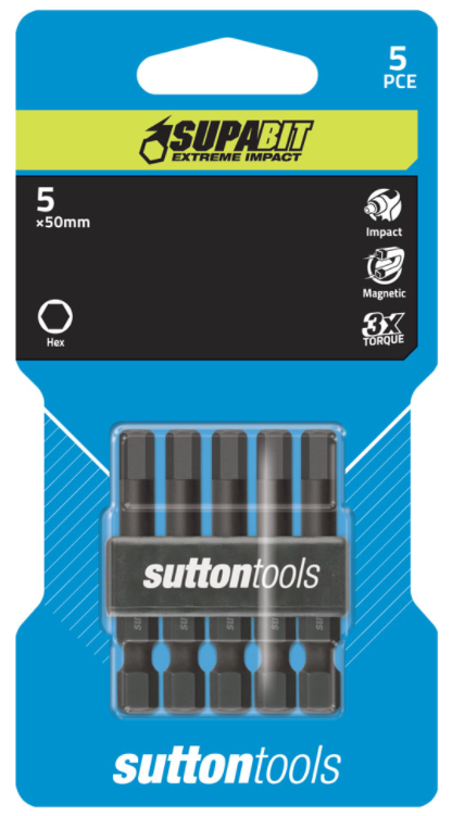 SCRDVRBIT IMPACT S147 5mm x50 Hexagon Power Sutton 5 Pack