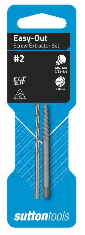 Sutton Tools Screw Extractors or Easy Outs are designed to remove broken studs, bolts, socket screws and fittings