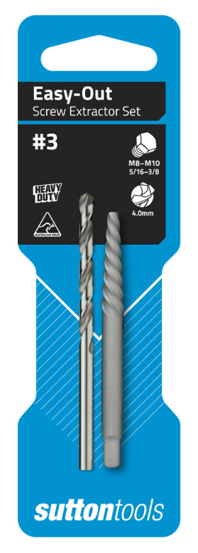 Sutton Tools Screw Extractors or Easy Outs are designed to remove broken studs, bolts, socket screws and fittings